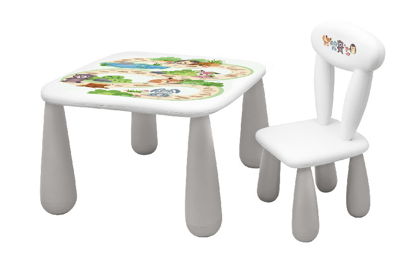 MALTEX SET LUNA LEŚNA FERAJNA Stolik dla dzieci + krzesełko biały/szary