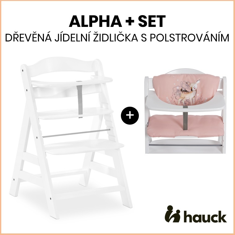 Hauck Alpha+ set 2v1 dřevěná židle, white + polstrování Sweety