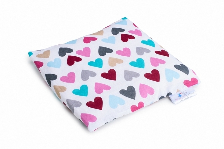 Nahřívací polštářek s třešňovými pecičkami 20x20cm, Srdíčka, barevná