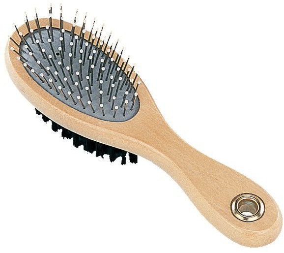 Oboustranný přírodní kartáč pro rozčesávání srsti. Jemná strana s umělým vláknem je vhodná pro závěrečné pročesání. Rukojeť pohodlně zapadne do ruky. Použití: Kartáč je vhodný pro kočky a psy s krátkou až středně dlouhou srst malých plemen, umělá vlákna oceníte u psů s jemnou srstí.