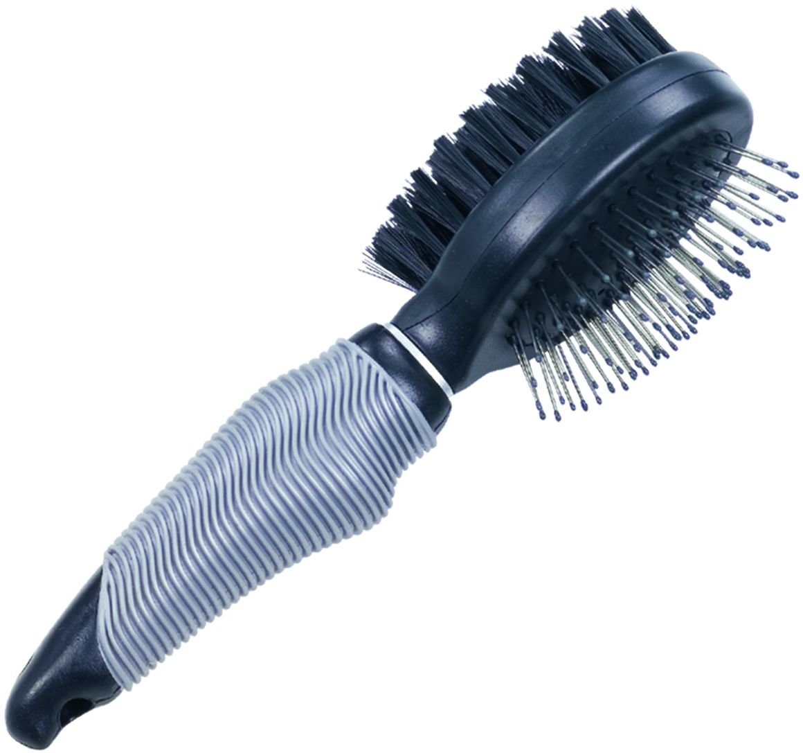 Profesionální oboustranný kartáč, pro rozčesání srsti, finální úpravu a podporu lesku srsti. Drátěná hlavice s ochrannými čepičkami pronikne až do podsady. prečítať celé