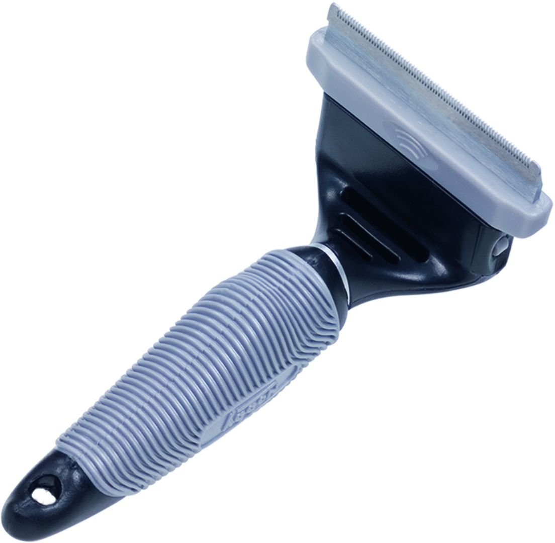Profesionální hrablo s kovovou samočistící hlavicí pro psy s dlouhou srstí. Ergonomické madlo skvěle padne do ruky. Redukuje línání o více než 90%. Rychle a snadno odstraňuje podsadu a uvolněné chlupy. Hrablo neřeže a nepoškozuje srst Vyčesání hřebenem odstraní starou srst a podsadu. Nezkracuje...