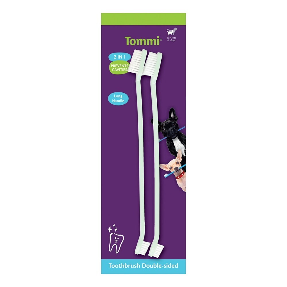 Oboustranný zubní kartáček TOMMI pro psy a kočky.• brání tvorbě zubního kamene• pravidelná péče zabraňuje krvácení dásní• chrání účinně ústní dutinu Vašeho psa i kočky• speciálně vyvinutá hmota rukojeti a vláken zabraňuje poranění ústní dutiny či poškození zubní skloviny při náhodném skousnutí...