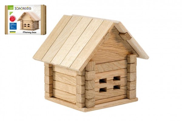 Stavebnica drevený dom 37 dielikov v krabici 22x16, 5x6cm