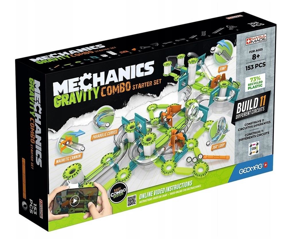 Geomag Mechanics Gravity RE Combo Štartovací set 153 je inovatívna stavebnica, ktorá prináša interaktívny zážitok plný dobrodružstva. Kombinuje magnetické tyčky, kovové guličky a mechanické prvky, ktoré umožňujú stavať pohyblivé a dynamické konštrukcie. Vďaka nim sa niektoré časti môžu otáčať a vytvárať efektné reťazové reakcie, čo prináša neustálu zábavu a inšpiráciu.