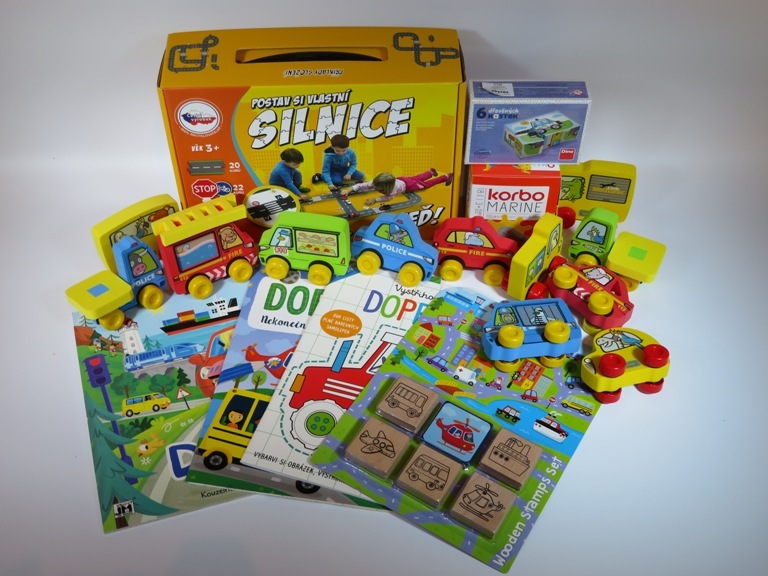 Pestrý herní set plný vystřihovánek, razítek, omalovánek, kostek, silnice, profesních autíček, stavebnice a prečítať celé