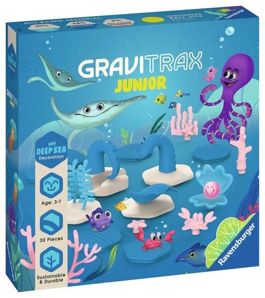 GraviTrax Junior Oceán je rozšírenie populárnej stavebnice, ktoré prináša do vášho herného sveta vzrušujúce prvky podmorského života. Vďaka rôznym dekoráciám a zvieratkám z oceánu môžu deti vytvoriť originálnu dráhu, ktorá vyvolá úžasné zážitky a podporí ich fantáziu.