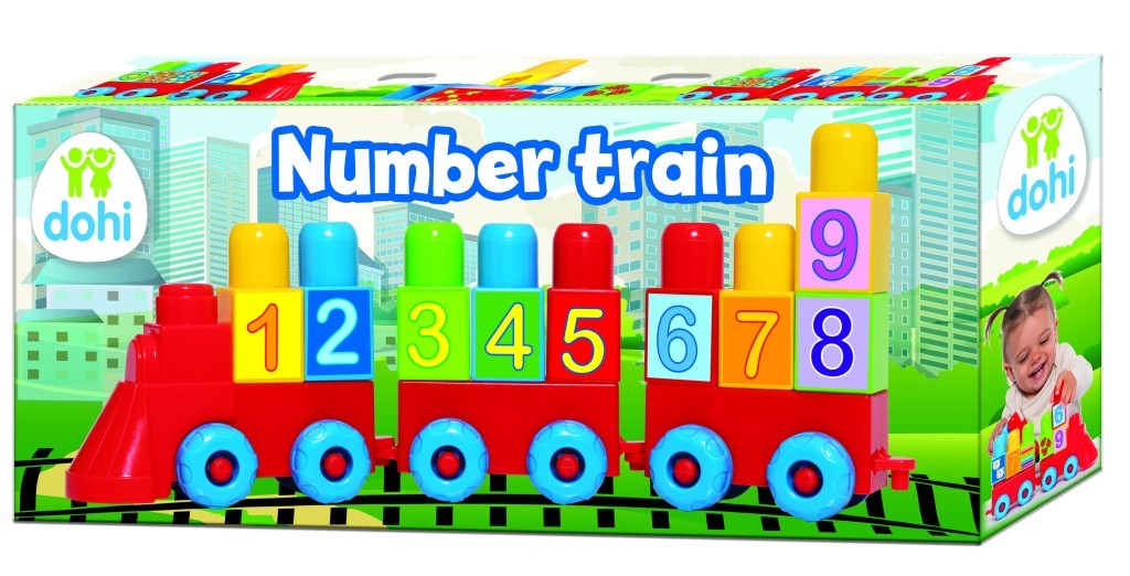 Stavebnice Vláček plastový s čísly – pro nejmenší dětí, rozvíjí dětskou kreativitu, motoriku a učí děti jednoduchým počtům. Balení obsahuje lokomotivu a dva vagony a kostky s čísly. prečítať celé