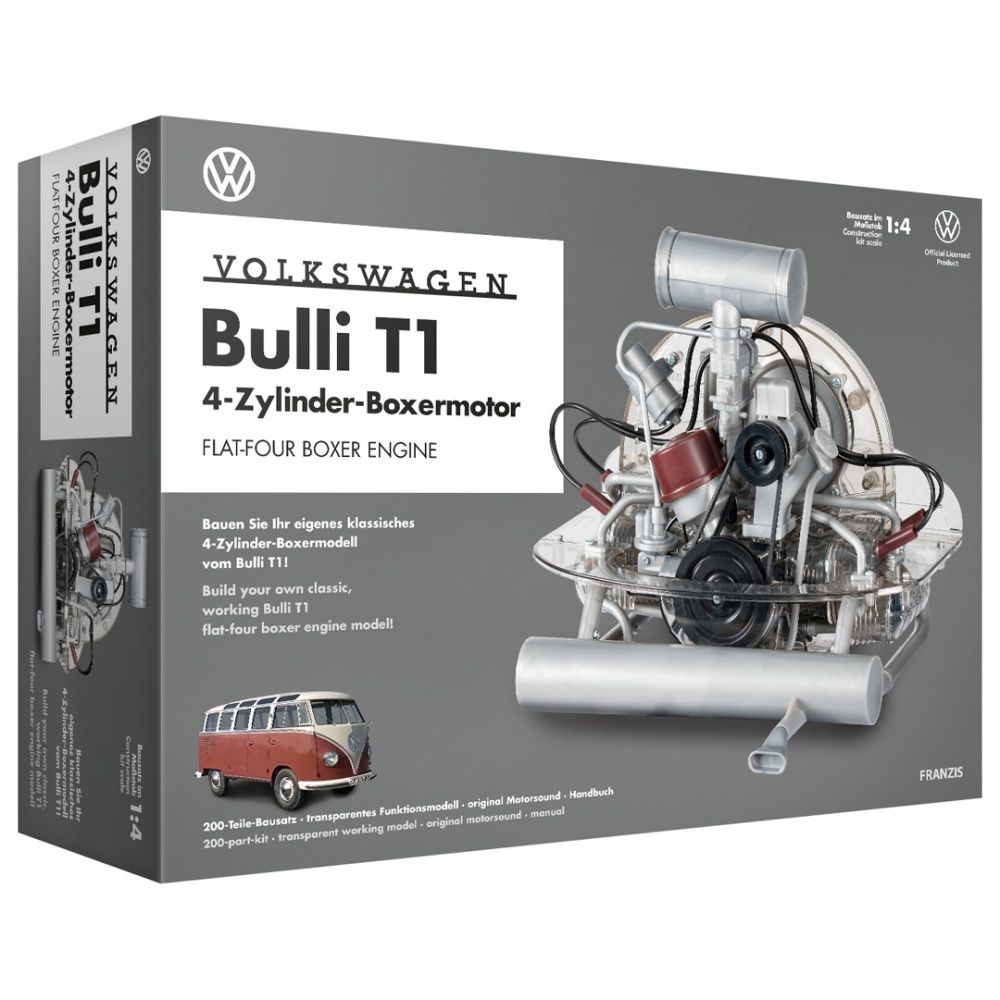 MAKETA BOXEROVÉHO MOTORU VW BULLI T1 Z LET 1950-1953 * REALISTICKÉ ZVUKY * PRŮHLEDNÉ KRYTY PRO SLEDOVÁNÍ MOTORU * SIMULACE ZÁPALU SVÍČEKZažijte motor boxer všemi smysly! Podívejte se, jak se ventily otevírají a zavírají, jak se klikový hřídel přesně otáčí, zavřete oči a uslyšíte původní zvuk...