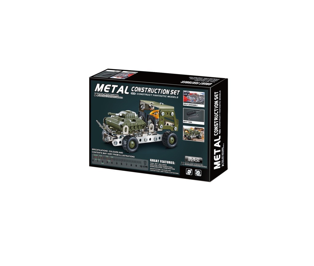 Postavit jedinečné vojenské auto ze 133 dílků je náročná, ale zároveň nesmírně uspokojující úloha. Sada obsahuje kombinaci kovových dílů a plastových doplňků, které se spojují pomocí šroubků a matiček. Tento sofistikovaný systém stavby je navržen tak, aby stavění bylo jednoduché, zábavné a zároveň výzvou.