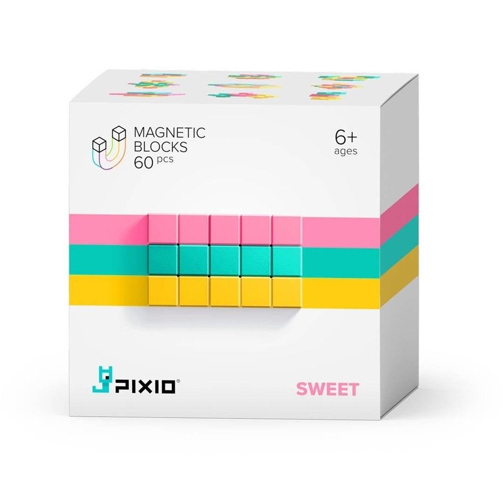 Klocki PIXIO(R) SWEET: kolory na deser | Sweet w kolorze żółtym, różowym i turkusowym uzupełniają się nawzajem jak tęcza gałek lodów na największym rożku w salonie. 60 sztuk klocków w zestawie.Magnetyczne klocki PIXIO(R) w idealnie dopasowanych kolorach pozwolą wcielić w życie wszystkie kreatywne...