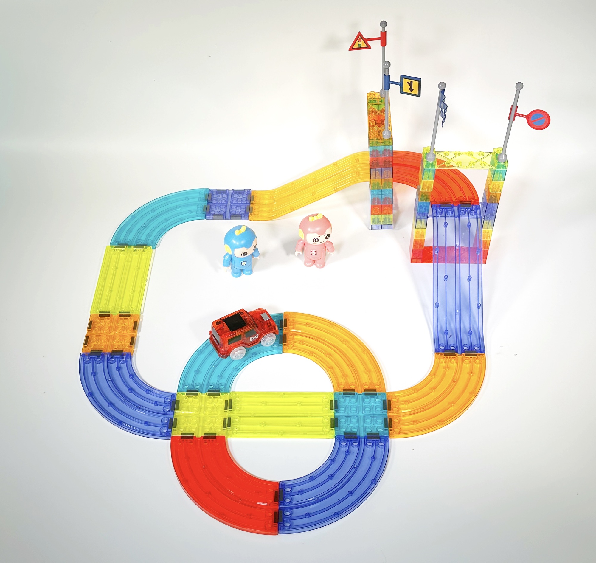 STAVEBNICE Autodráha Barevná Magnetická s elektrickým autem, 63 dílů