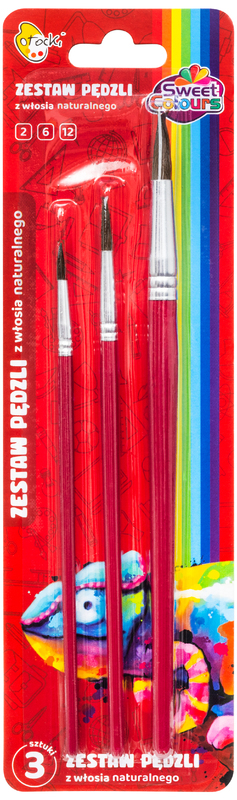 Zestaw pędzli 3 sztuki z włosia naturalnego nr: 2,6,12, Otocki