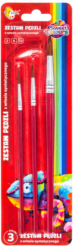 Zestaw pędzli 3 sztuk z włosia syntetycznego nr: 2,6,12, Otocki