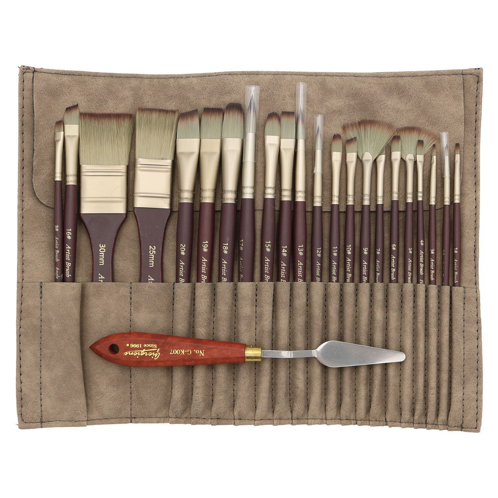 Sada 22 ks štětců pro výtvarníky /umělce v praktickém svinovacím balení + špachtle.štětce No: 1 - 20, 25 mm, 30 mm (ploché 18 ks | kulaté 4 ks)špachtla z ušlechtilé ocelimateriál: plastová /dřevěná násada, nylonový vlas, obal z umělé kůže prečítať celé