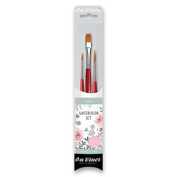 Sada 3 kusů syntetických štětců da Vinci Spin Synthetics osvědčené kvality, od německého výrobce s dlouholetou tradicí. Jemné elastické vlákno s vynikající absorpční schopností. Bezešvá „stříbrná“ objímka. Vhodné pro akvarelové a jiné tekuté barvy. Výborné vlastnosti i při malování na hedvábí.