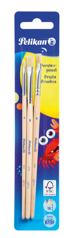Štětinový štětec Pelikan řady 613 F, velikost 4,6,8, z čistě prasečích štětin, bezešvé hliníkové úchyty, dřevěná rukojeť s lesní certifikací, na blistru prečítať celé
