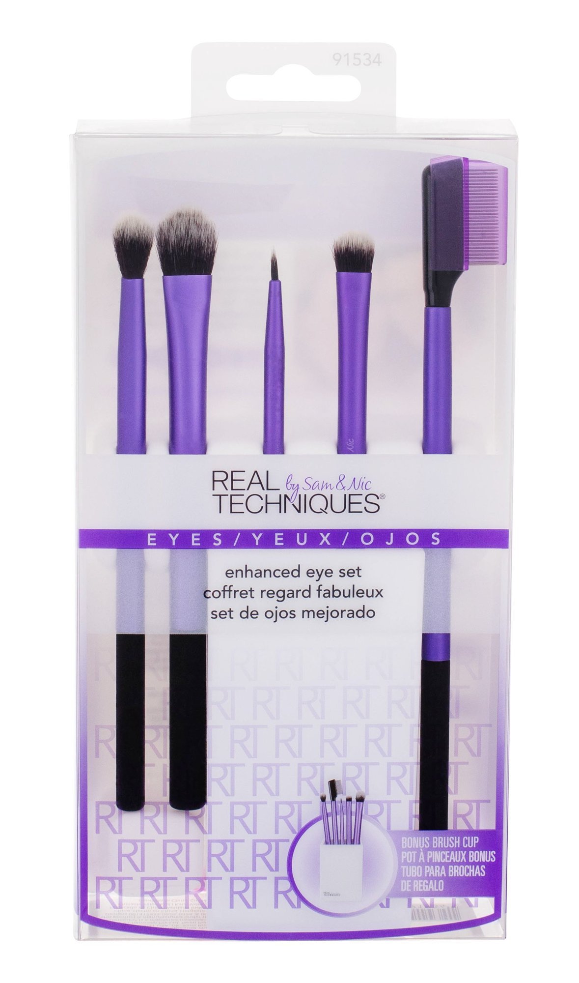 Sada pro dokonalé líčení očí Real Techniques Eyes Enhanced Eye Set.Složení kazety:kosmetický štětec na oční stíny Medium Shadow Brush 1 ks.Kosmetický štětec se střední délkou chlupů a širokým plochým tvarem slouží k blendování pudrových i krémových očních stínů.kosmetický štětec na oční stíny...