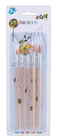 Sada štětců, č. 2-4-6-8-10, dřevo, rukojeť z přírodního dřeva, kulaté, COOL by VICTORIA BA-3416