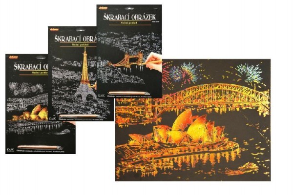 Škrabací obrázek zlatý 20 x 25 cm Sada obsahuje obrázek natištěný na černém kartonu a umělohmotné škrabací pero s kovovým hrotem. Seškrabte linky předtištěného obrázku. Vhodné pro děti od 6 let. prečítať celé