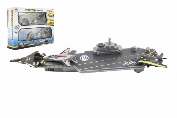 Letadlová loď 24cm + stíhačky 3 ks plast v krabici 29x22x7cm