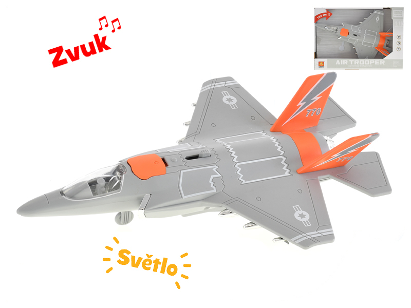 Stíhačka 31cm na setrvačník na baterie se světlem a zvukem v krabičce