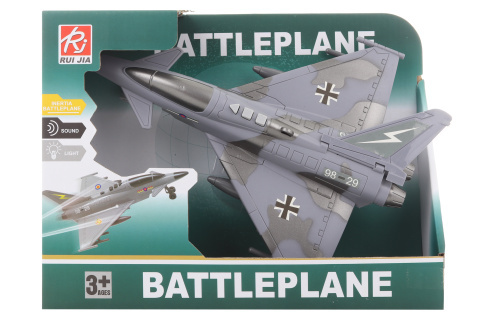 Plastová stíhačka na baterie. Stíhačka vydává zvuky. Rozměry cca 27 x 20 x 12,5 cm. Napájení na 3 AG13 baterie (jsou součástí). Rozměry balení cca 28 x 21 x 8,5 cm. Věk 3+ prečítať celé