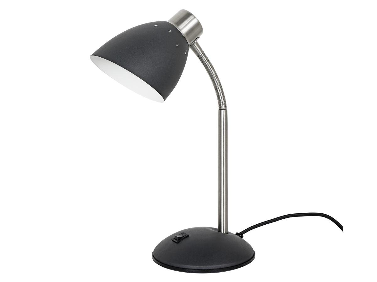 Stolní lampa v matné černé barvě na stříbrné noze.