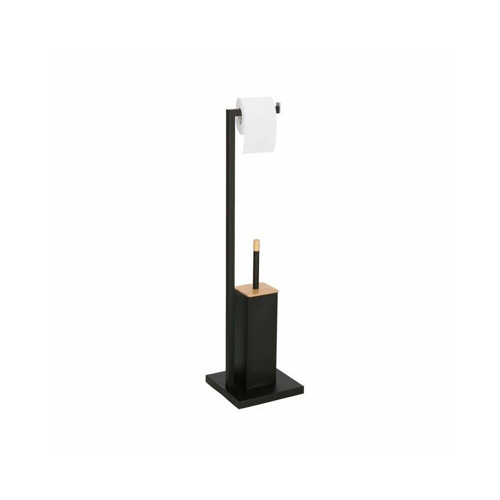 Držák na toaletní papír s WC štětkou SPRINGOS TB0013 černý/bambus