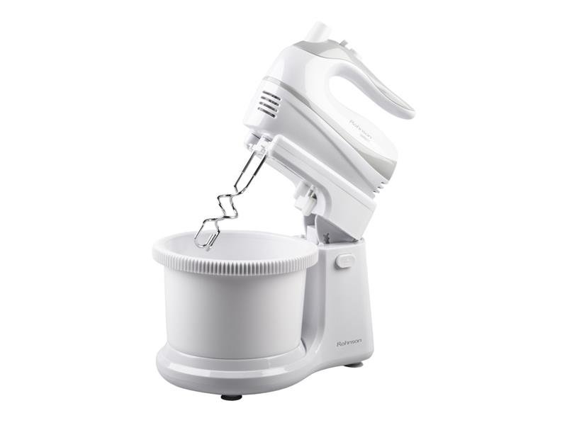 Ruční šlehač je pomocník, který nechybí v domácnosti téměř žádné hospodyňce. Při přípravě pokrmů jistě oceníte možnost umístit přístroj do základny s otočnou mísou a mezitím se věnovat přípravě čehokoli dalšího. Šlehač s příkonem 500 W nabízí 5 rychlostí zpracování surovin a tlačítko Turbo pro maximální výkon. V sadě najdete stabilní základnu s protiskluzovými přísavkami a výklopným ramenem. Praktická otočná mísa disponuje objemem 2,5 litru. K dispozici vám budou 2 nerezové šlehací metly nebo 2 hnětací háky. Ty po ukončení práce pohodlně uvolníte pomocí tlačítka.
