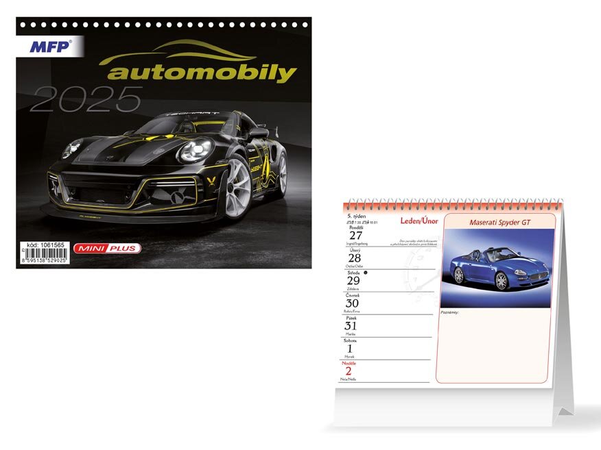 Stolní kalendář na rok 2025 mini s názvem Automobily. Určený pro milovníky aut. Vhodný pro zapisování důležitých poznámek, k organizování různých událostí každodenního života. Možnost dotisku firemního loga a textu na spodní stranu kalendáře.TYP KALENDÁŘE: stolní OBRÁZKY: autaV KALENDÁŘI...