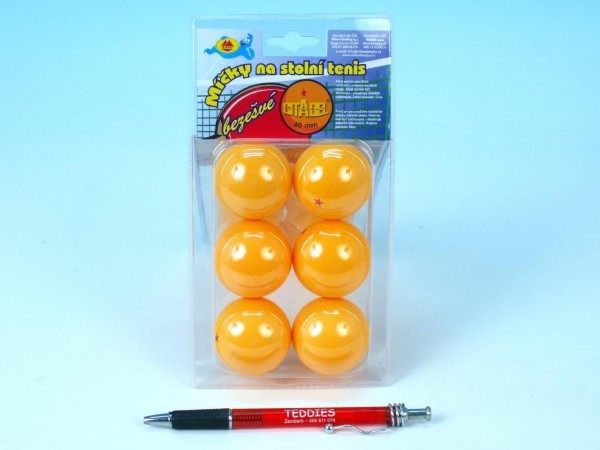 Míčky na stolní tenis bezešvé oranžové 40mm 6ks na kartě
