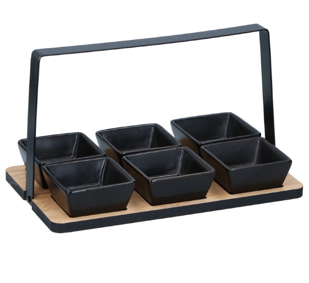 Stylová servírovací sada Alpina – dokonalá prezentace vašich tapasPozvedněte servírování na novou úroveň s touto elegantní servírovací sadou Alpina. Perfektní pro večírky, rodinné oslavy nebo posezení s přáteli – sada se šesti čtvercovými keramickými miskami umožňuje servírovat různé pochoutky...