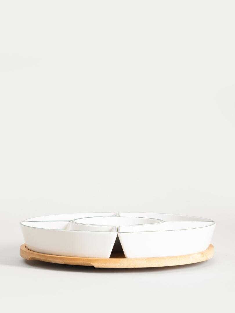 Półmisek w zielone liście do serwowania przekąsekSerwuj przekąski w wyjątkowy sposób z półmiskiem FINCAN. To eleganckie naczynie w elegancki wzór zielonych liści, które jest w stanie pomieścić wszystkie ulubione smakołyki. Naczynie pięknie prezentuje się na stole bez względu na okazję. Dopasujesz...