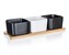 Sada 3 hranatých porcelánových misek, 2 v černé a 1 v bílé barvě na bambusovém podnosu o celkových rozměrech 28,2 x 9,8 x 6 cm, je ideální pro servírování různých druhů oříšků, sušeného ovoce, oliv apod. prečítať celé