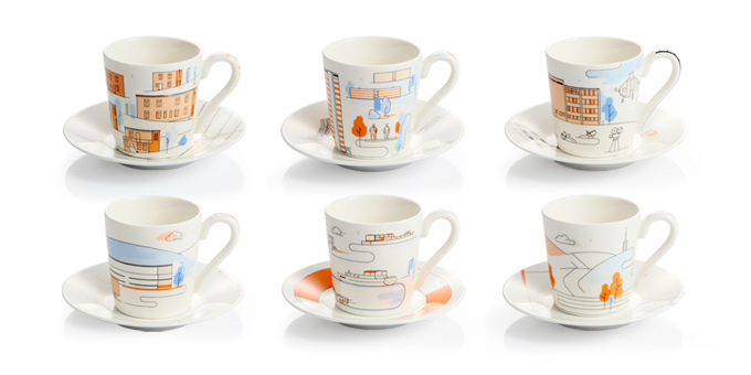 Šálky na espresso s podšálky myCOFFEE jsou vyrobeny z tenkostěnného porcelánu New Bone výjimečného svou mimořádnou bělostí a vysokou odolností. Souprava šesti šálků s podšálky kombinuje originálním způsobem tradiční design porcelánového nádobí s dekory dominant baťovského Zlína. Vhodné do mikrovlnné trouby a myčky.