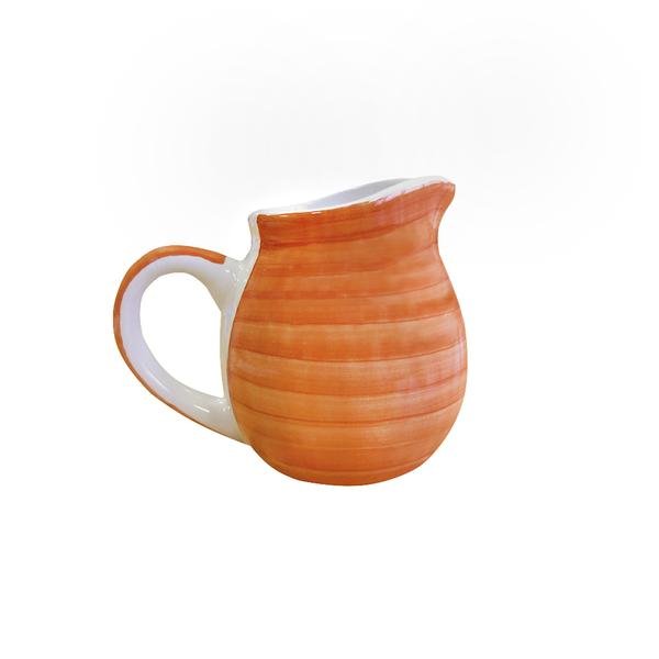 Mlékovka s výlevkou a ouškem. Je vhodná k servírování mléka ke kávě. Vyrobena z proužkované keramiky. Vhodná do myčky na nádobí. Objem 250 ml, rozměry 9 x 10 cm. Barva oranžová. prečítať celé