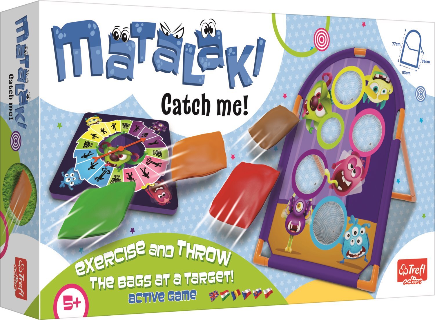 Vítejte ve světě spokojených příšerek s aktivní hrou TREFL ACTIVE: MATALAKI! Skákejte, točte se, cvičte a pokuste se trefit vylosovanou příšerku barevným pytlíčkem. Zvládnete hodit mezi nohama, se zakrytým okem nebo třeba zády k cíli? Příšery připravily mnoho úkolů, aby Vám házení...