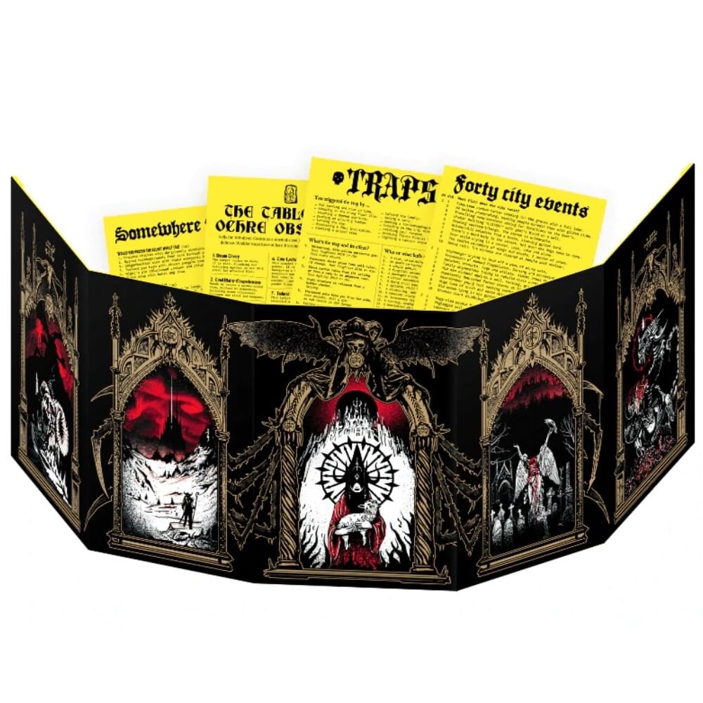 MÖRK BORG GM Screen je zástěna pro metalové fantasy RPG MÖRK BORG, která usnadní práci gamemasterovi. Zástěnu tvoří pět složených panelů, uvnitř se nachází užitečné tabulky a pravidla, z vnějšku pak obrázky lokací a důležitých postav. Zástěna je v angličtině. MORK BORG GM Screen: A five-paneled...