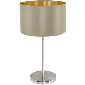 Stolní lampaEglo Maserlo 31629Druh patice: E27Zdroj světla: E27Zdroj součástí balení: bez zdrojeMax. výkon (W): 1X60WMateriál těla: ocelBarva těla: matný niklMateriál stínidla: textilBarva stínidla: šedohnědá, zlatáStupeň krytí: IP20Výška (mm): 420Průměr (mm): 230Hmotnost (kg): 0.814