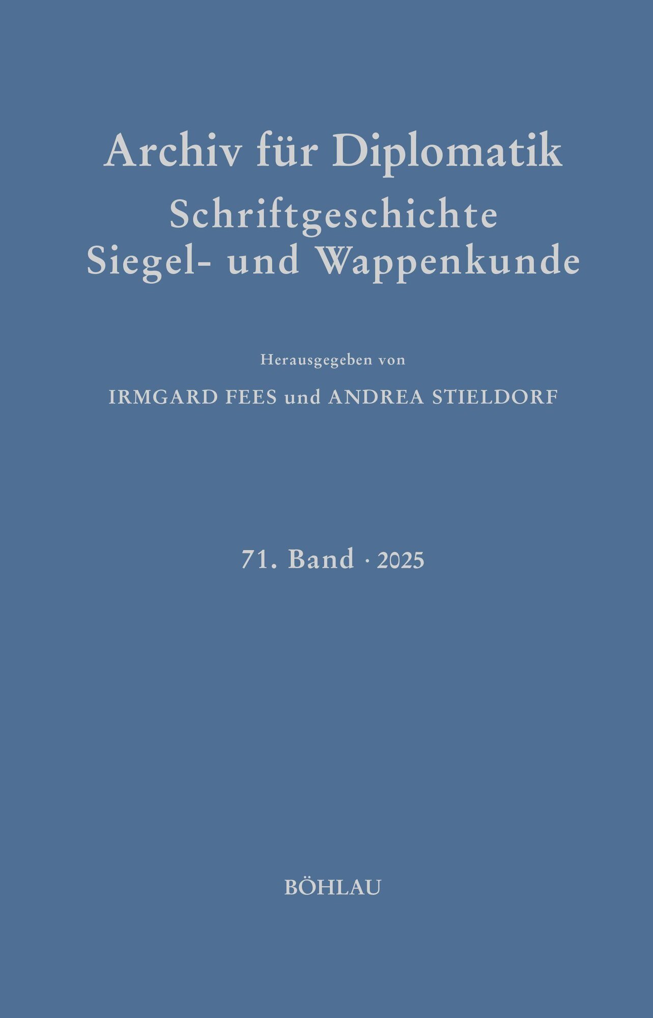 Im Archiv für Diplomatik 2025 finden sich Beiträge zur Diplomatik, Heraldik und Epigraphik vom 10. Jahrhundert bis in die Neuzeit. Archiv für Diplomatik 71 (2025) prečítať celé