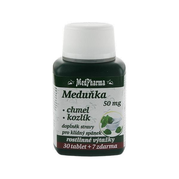 Produkt Meduňka 50 mg obsahuje 6 rostlinných složek. Meduňka má obdobné vlastnosti jako med a mateří kašička. Chmel je rozšířen po celé Evropě. K léčebným účelům se používají květy samičích rostlin, tzv. šištice. Kozlík je trvalka, jejíž oddenek obsahuje mnoho důležitých sloučenin, které jsou označovány za původce uklidňujících účinků této rostliny.