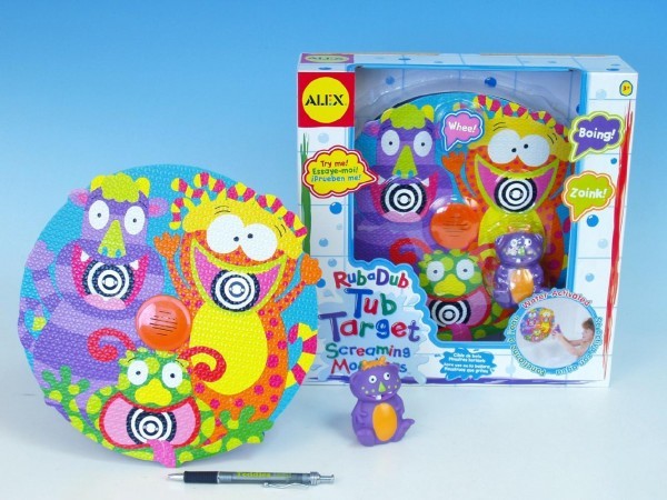 Pěnový terč do vany se stříkacím zvířátkem na baterie 3xLR44 se zvukem v krabici