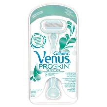 Holicí strojek s držákem do sprchy Gillette Venus ProSkin Sensitive.Holicí strojek je speciálně vytvořen pro citlivou pleť. Poskytuje důkladné oholení s minimálním podrážděním pokožky. Obsahuje 5 břitů, které snižují tlak na pokožku, čímž eliminují riziko poranění. Zvlhčující proužek s extra...