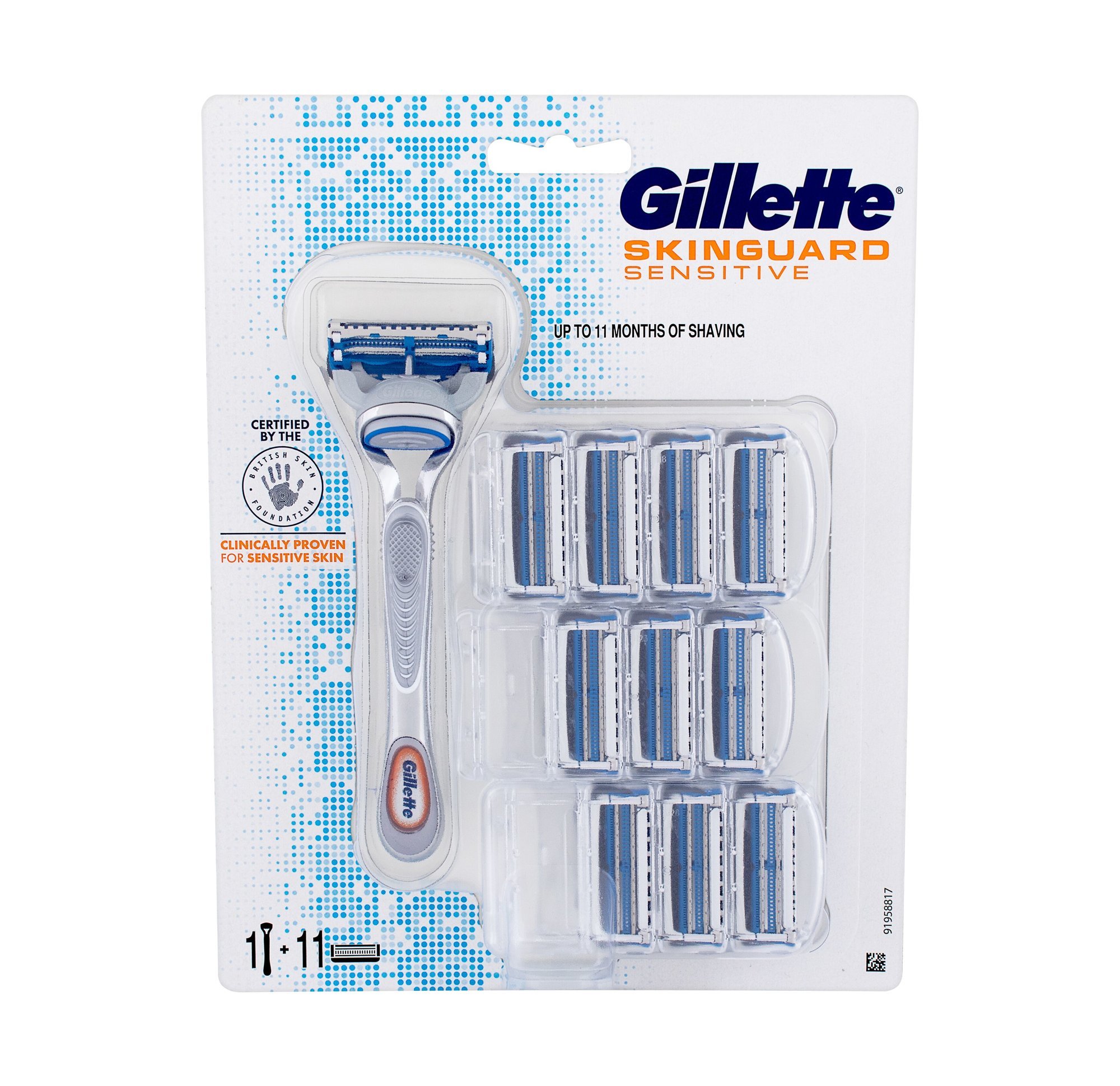 Holicí strojek Gillette Skinguard Sensitive je speciálně vytvořen pro muže s citlivou pokožkou a na pokožku trpící na podráždění. Ochrana s technologií SkinGuard je umístěna mezi břity a díky tomu během holení účinně chrání pokožku.