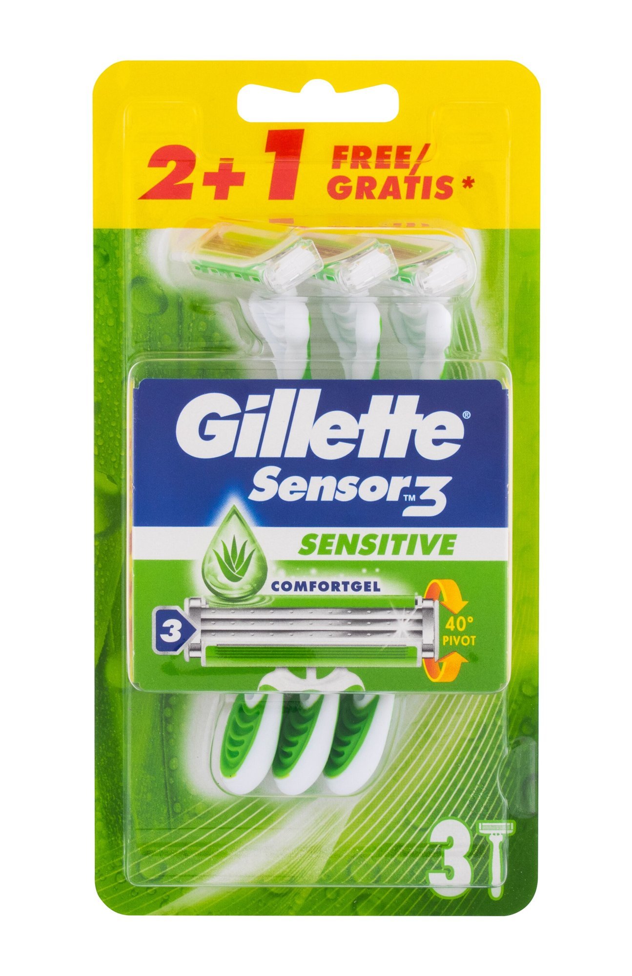 Jednorázová pánská holítka Gillette Sensor3 Sensitive díky výkyvné hlavě, která se dokáže vychýlit až o 40° a třem břitům umožňují opravdu dokonale hladké oholení.