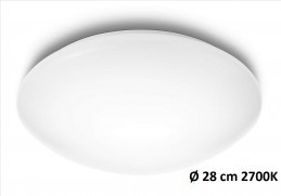 Malé stropní/ nástěnné LED svítidlo Suede Ø 28 cm s příjemně rozptýleným hřejivým bílým světlem s teplotou chromatičnosti 2700K z kolekce moderního interiérového osvětlení Philips myLiving vhodně nasvítí menší místnost kdekoli v domě. Je vyrobeno z kvalitního odolného plastu v bílé barvě. Svit...