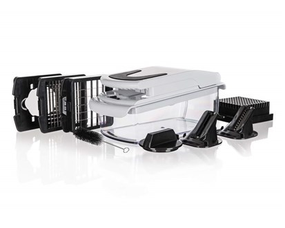 Kráječ univerzální CULINARIA 4 v 1 je všestranný pomocník do kuchyně. Balení obsahuje: 1 x víko s držadlem, 1 x zásobník na nastrouhané potraviny o objemu 1,2 l , 1 x nástavec na jemné krájení, 1 x nástavec na hranolky, 1 x čepel na jullienne spirály, 1 x čepel na široké spirály.