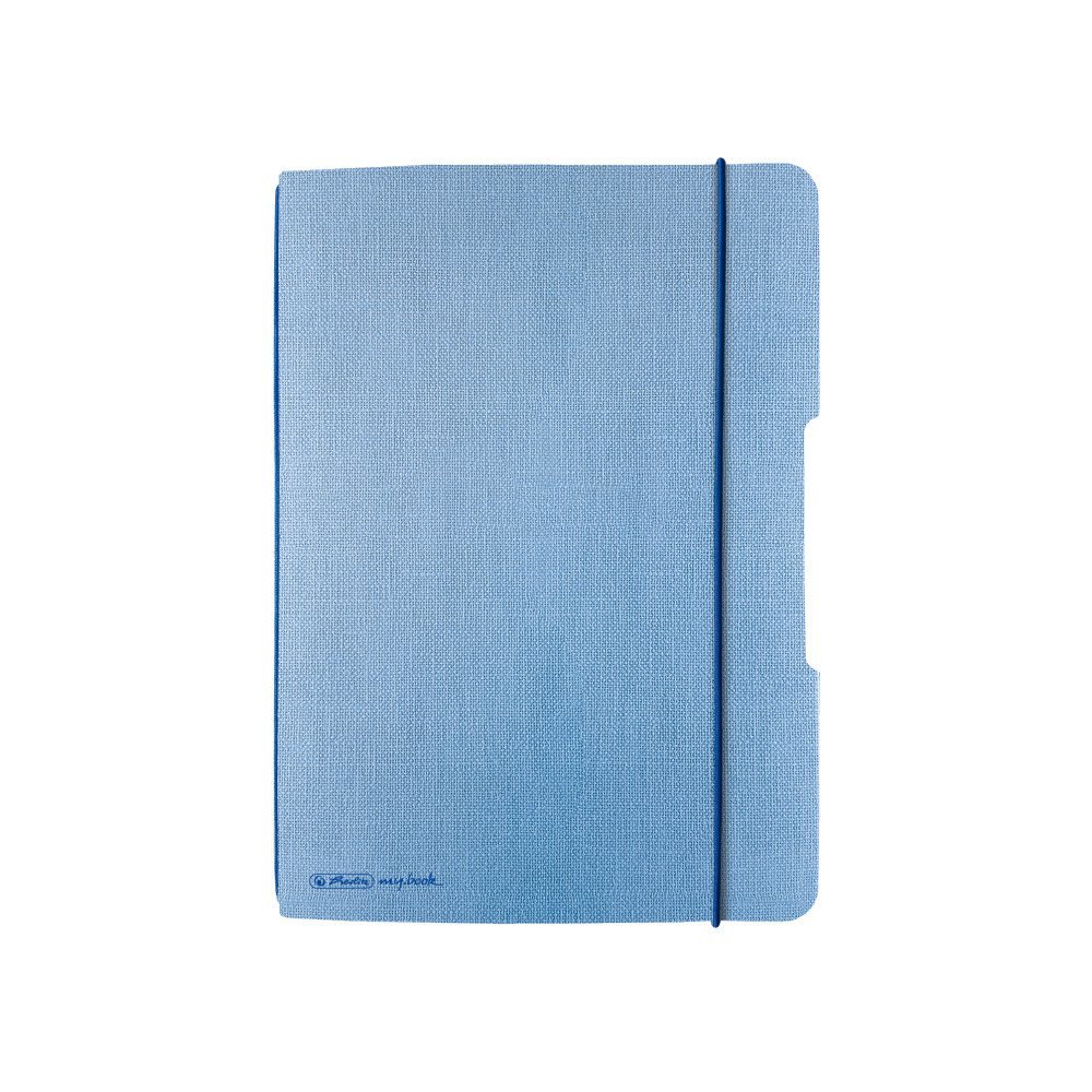 80 g/m2, potah světle modrý len, zavírání s gumou, zaoblené rohy, perforace, děrování, modrá gumička prečítať celé
