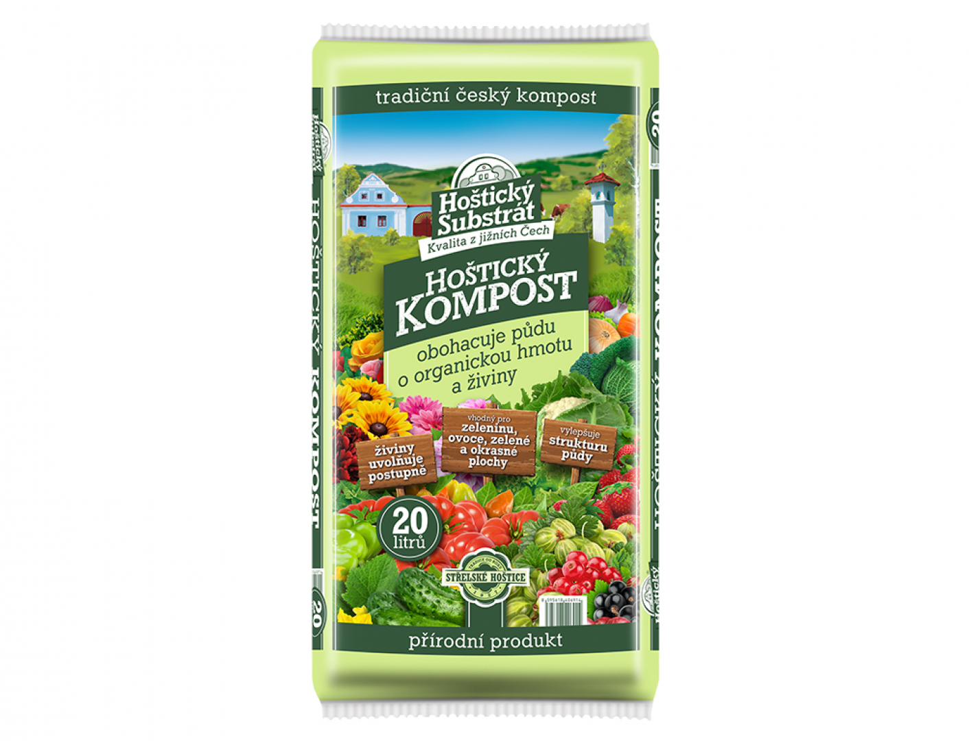 Hoštický kompost je organické hnojivo vyráběné procesem kompostování organických složek (tráva, listí, kůra…). Neobsahuje čistírenské kaly ani jiné rizikové materiály. Hoštický kompost dodává do půdy organickou hmotu, základní i stopové živiny. Zvyšuje obsah humusu v půdě, podporuje půdní...